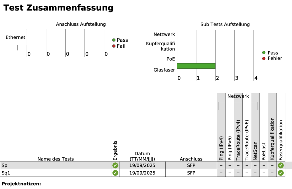 Die Glasfasermessung, -überprüfung und -zertifizierung sind entscheidend für die Effizienz und Zuverlässigkeit Ihres Netzwerks. Durch präzise Messungen können Probleme frühzeitig erkannt und behoben werden, um die Leistung zu optimieren. Lassen Sie uns helfen, Ihre Glasfaserverbindungen zu überprüfen und zu zertifizieren, damit Sie sich auf eine stabile und schnelle Internetverbindung verlassen können.